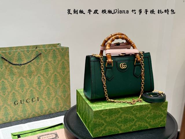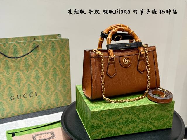 全套包装 复刻版!牛皮版本! Gucci 竹节包 Gucci横版Diana托特Tote。带链条 购物袋最新系列,这个款复古韵味特别浓,上身效果也超赞,主要以精致