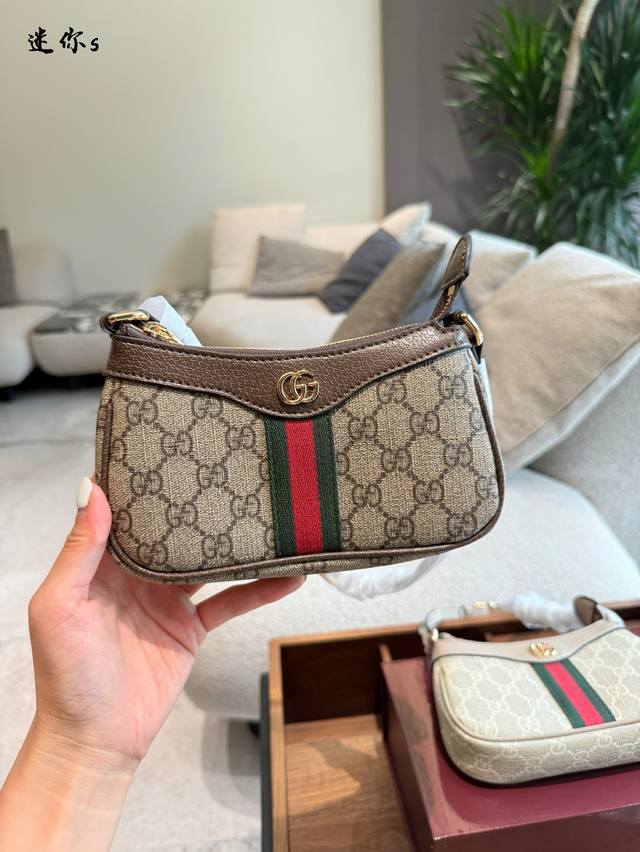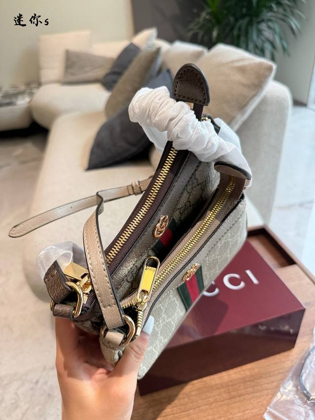 / Gucci Ophidia对迷你包毫无抵抗力 经典的绿红绿织带 双Glogo设计 手拎、斜挎 宽带可拆卸 18Cm双盒包装