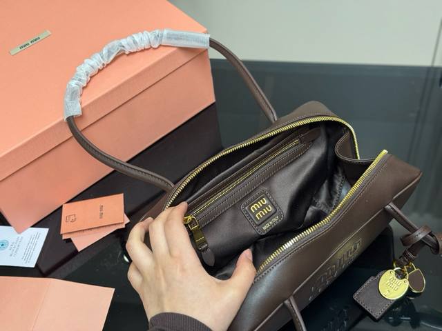 / 升级版配盒 Size:28*13Cm Miumiu保龄球 公文包 包包甜度刚好! 很难不爱啊啊! 可手拎也可斜挎 绝对不是小废包哦容量足足的~~ 出场就是Miu