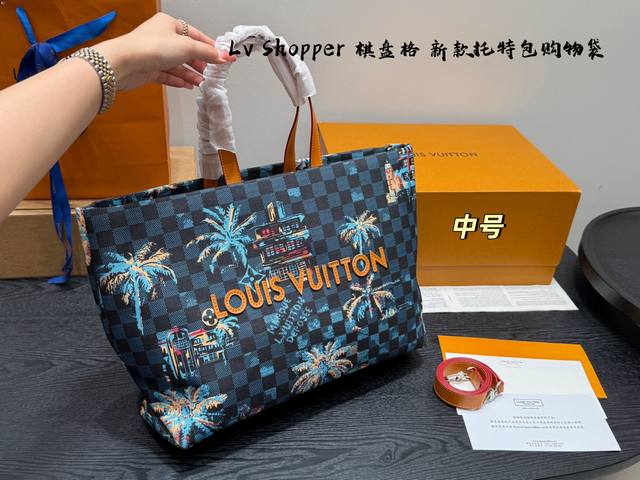 Lv Shopper 棋盘格托特包Tote包购物袋手提包 Damier Palm Trees