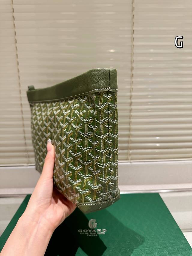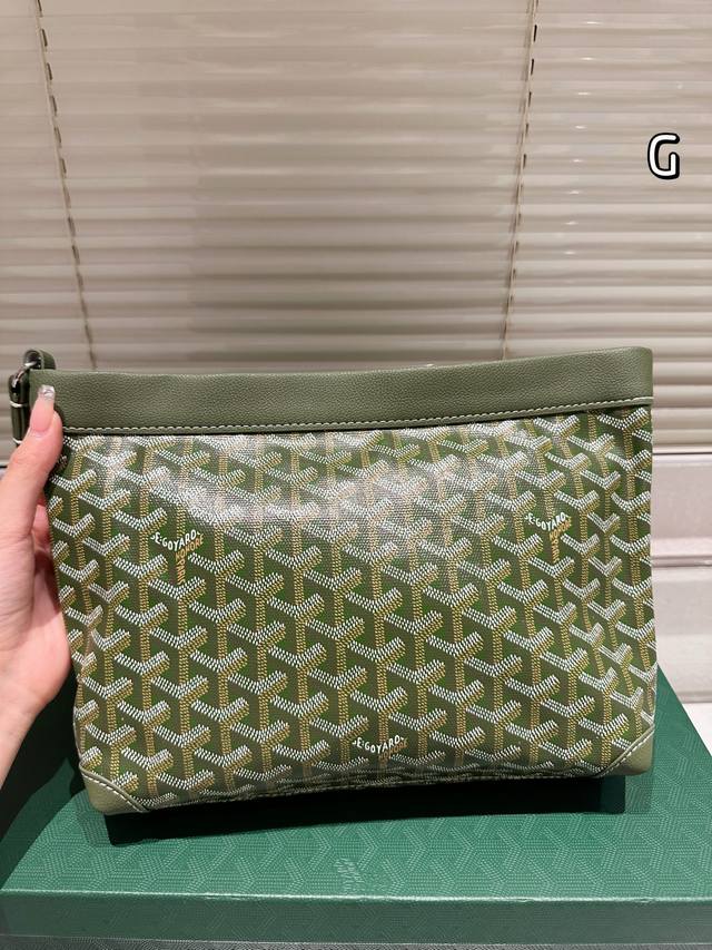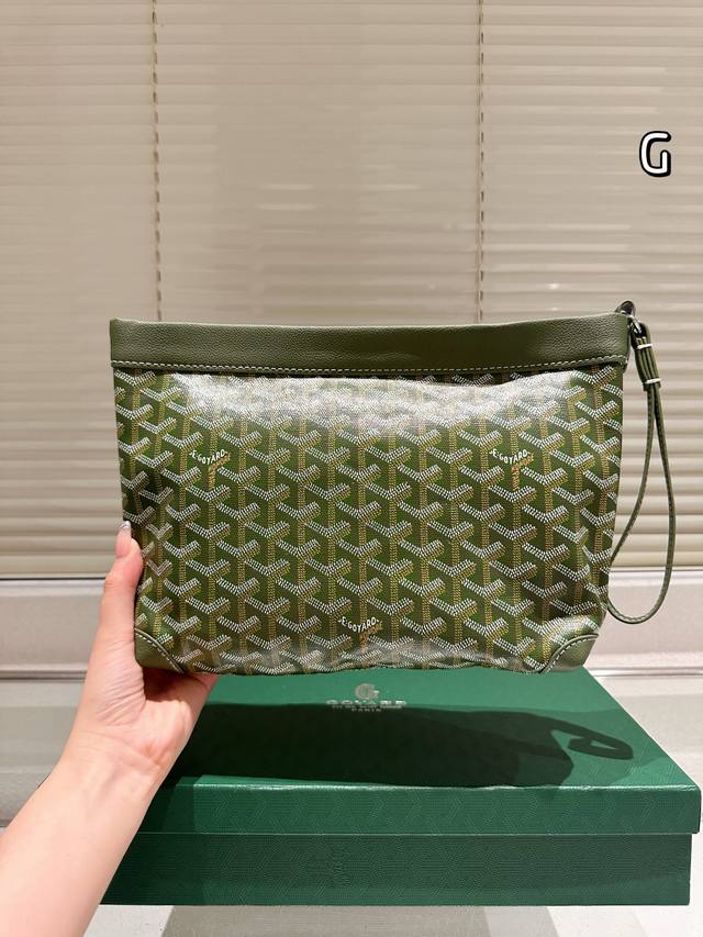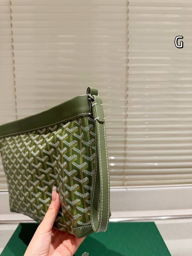 / 礼盒 Size:24.20Cm 戈雅Goyard手包 从头到尾全部都是客订哦! 另外收到的宝宝就会知道手腕带是立起来的[微笑][微笑] Goyard手包 出行必