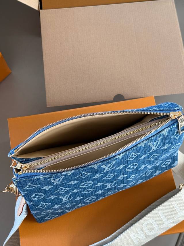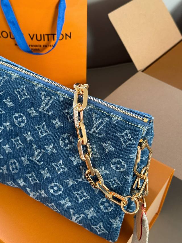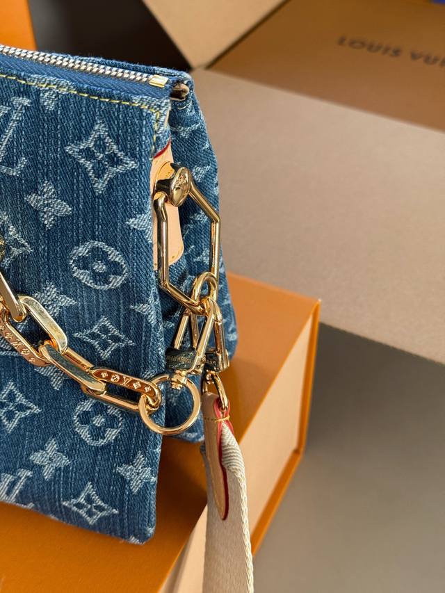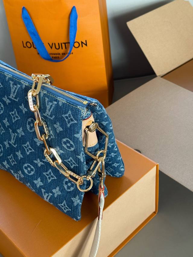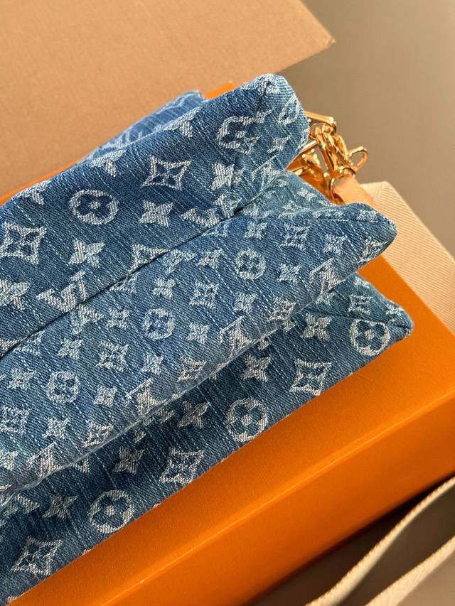 配盒 Size:26*20Cm 这才是春日天菜 Coussin 抱抱包真的好适合春夏啊, 牛仔元素真的百搭且随性! L家 牛仔丹宁真的好看又舒服! 配置两条肩带