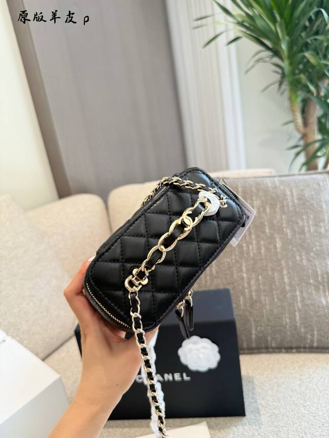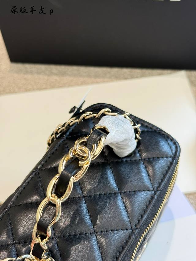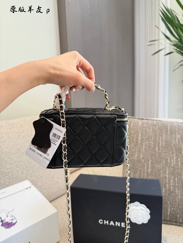 原版羊皮全套包装 Chanel新款“小双C”手柄长盒子黑色 方正硬挺的版型搭配柔软的羊皮一整个高级住,皮穿链条上面的小双C设计更是给造型注入不一样的趣味氛围感细