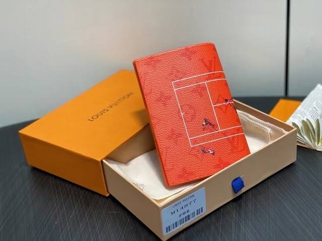 M14877橙色 度假系列护照夹 当季新款 护照套 M14877橙色 M14872白色 M14875绿色 本款护照套取材 Colored Monogram 帆布,于含蓄 Monogram 背景之上匠心描绘袖珍运动场景,再借卡片夹层和贴袋增添功能考量,成就又一父亲节佳礼。14 X 2.5 X 10 厘米
