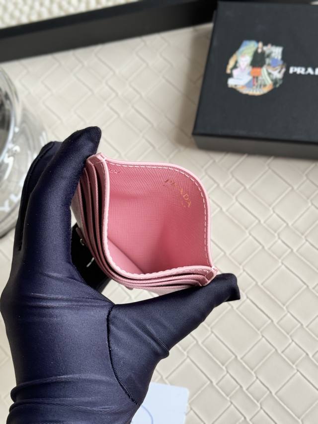 Prada 爆款卡包 男女通用小卡包,黑色,型号1Mc025 三角麦 系列 九个颜色 十字纹牛皮 制作,6个卡位一个中间夹层,可放置多张卡片以及零,尺寸11.2