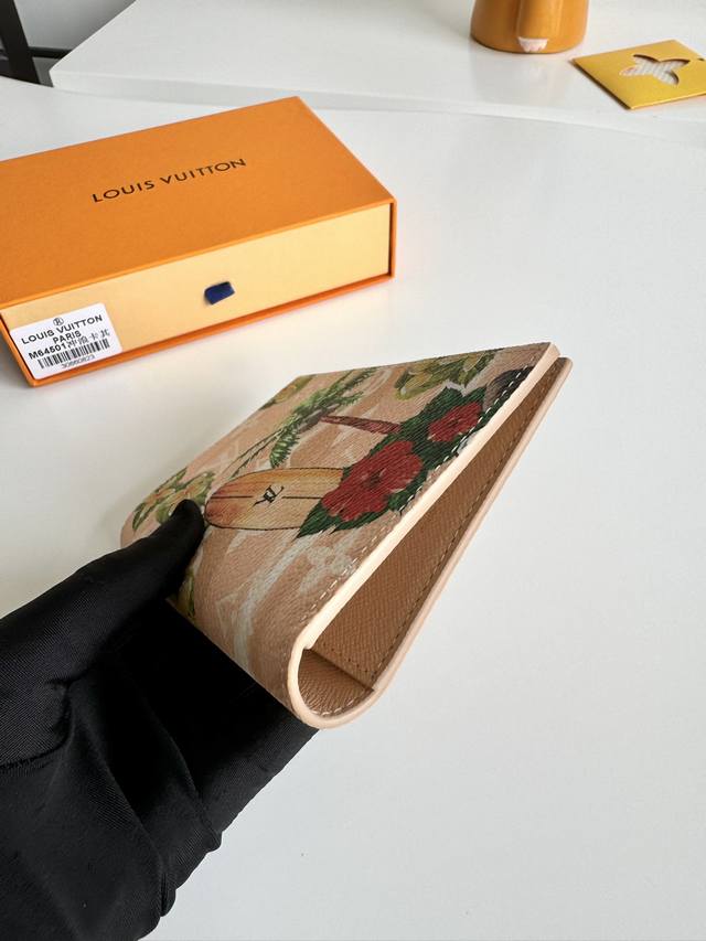 工厂P价 海外原单M64501 冲浪系列卡其独家实拍!本款护照套取材 Monogram Surfin’ 涂层帆布,以缤纷热带印花交叠繁复图案,洋溢浓郁夏日气息。卡片夹层和开放式口袋满足多元收纳需求,为漫漫旅程注入潮流格调。尺寸:14×10×2.5Cm