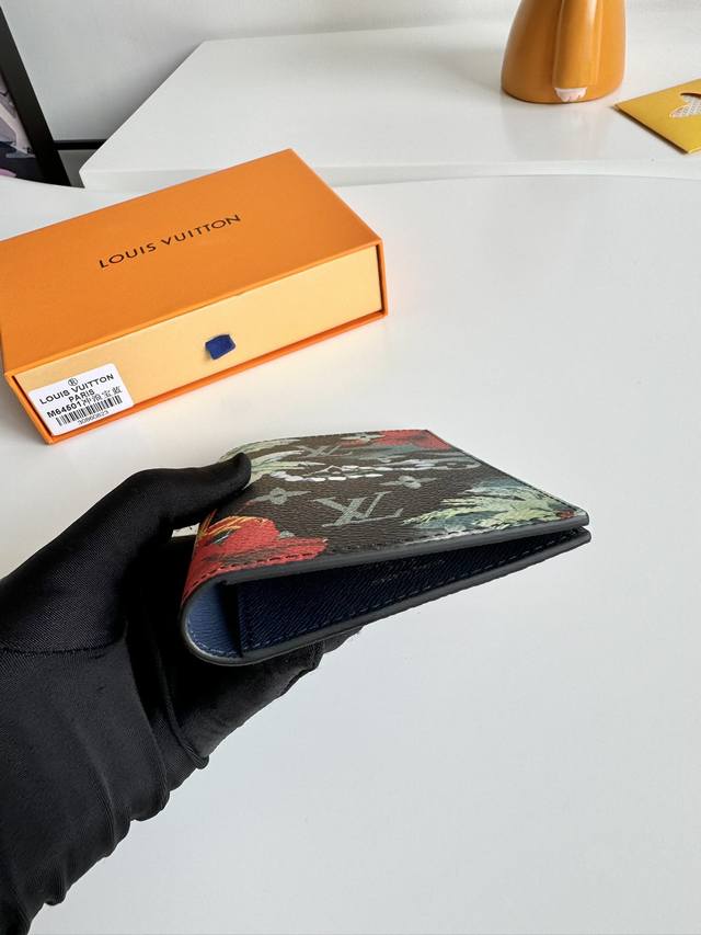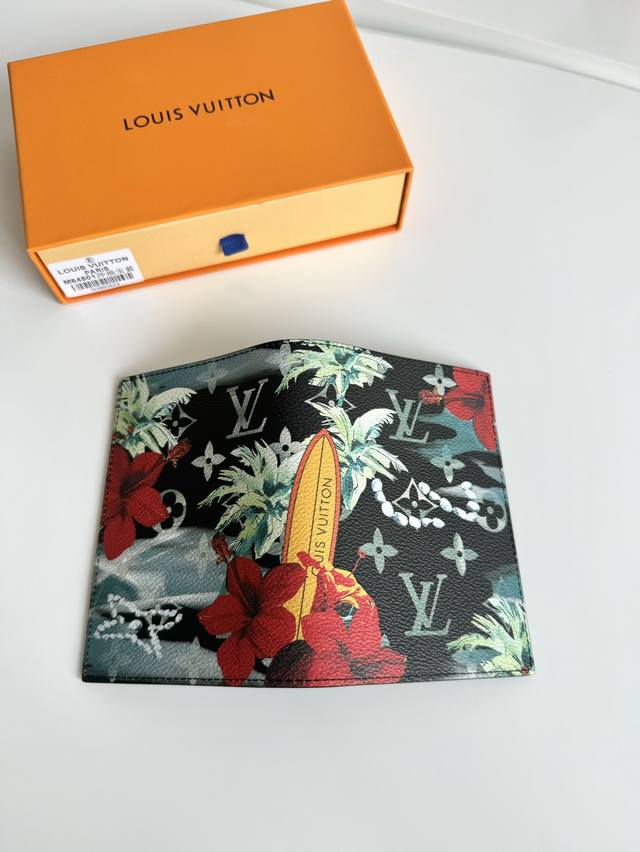 工厂P价 海外原单M64501 冲浪系列宝蓝独家实拍!本款护照套取材 Monogram Surfin’ 涂层帆布,以缤纷热带印花交叠繁复图案,洋溢浓郁夏日气息。卡片夹层和开放式口袋满足多元收纳需求,为漫漫旅程注入潮流格调。尺寸:14×10×2.5Cm