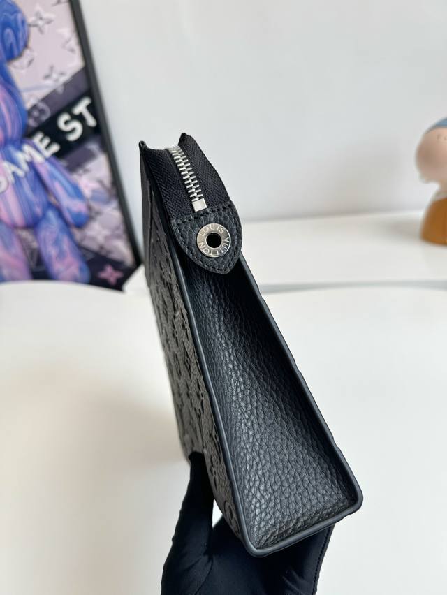 海外原单M61692荔枝纹独家实拍!此款小巧而时髦Pochette Voyage中号手包取材 Taga 荔枝纹牛皮,功能多样,既可作为旅行袋放于包中,亦可持于手