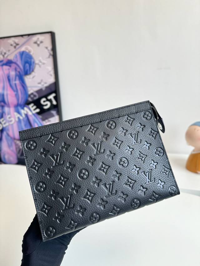 / 海外原单M61692荔枝纹独家实拍!此款小巧而时髦Pochette Voyage中号手包取材 Taga 荔枝纹牛皮,功能多样,既可作为旅行袋放于包中,亦可持于手
