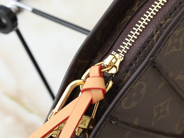 升级原版 M14804 Lv Fan 手袋取材 Monogram 帆布,以别致设计亮相 2025 春夏秀场,成就收藏家之选。皮革之上点缀 Monogram 花卉