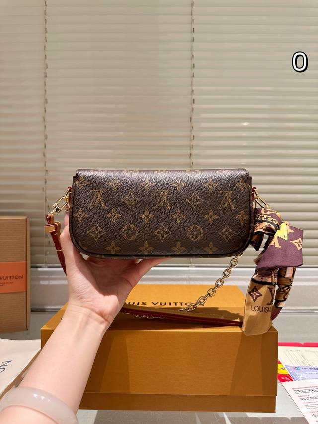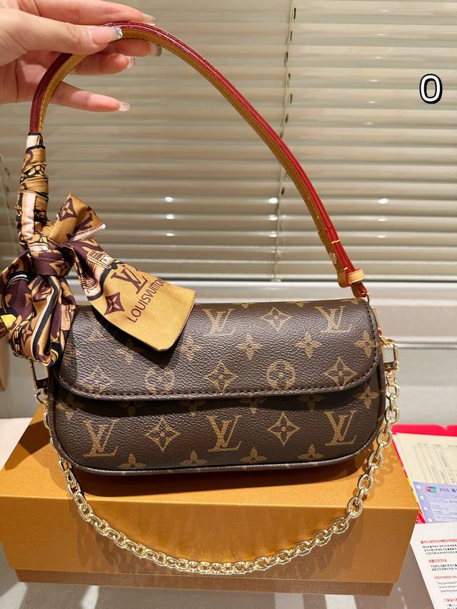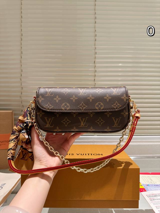 / 芯片配丝巾 2025新款 Lv 路易威登 Wallet On Chain Ivy腋下包 ~~Lv Ivy链条包 也是这两年的大爆款 两根肩带 包里面有做分层就很
