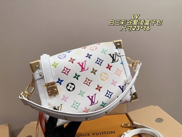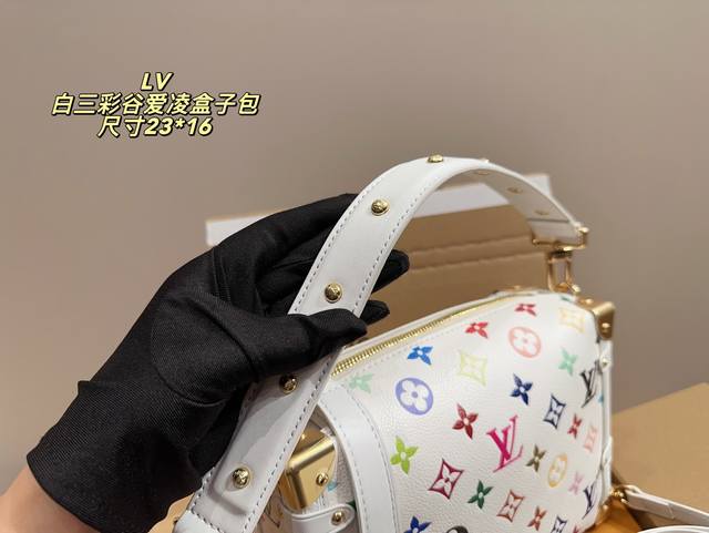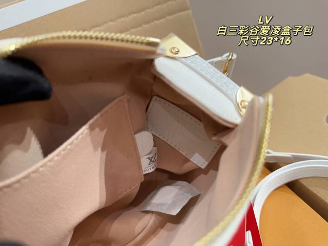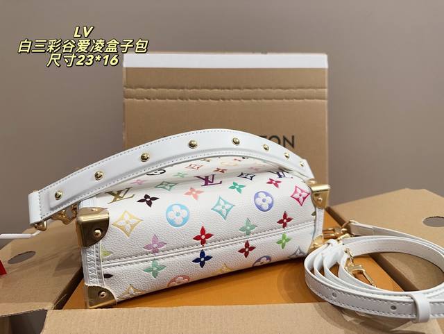 全套包装尺寸23.16 Lv Side Trunk白三彩谷爱凌盒子包 Lv白三彩出战~太好看啦 白色配色很温柔 更加耐磨耐用啦! 让人一见钟情的配色 大大的满足