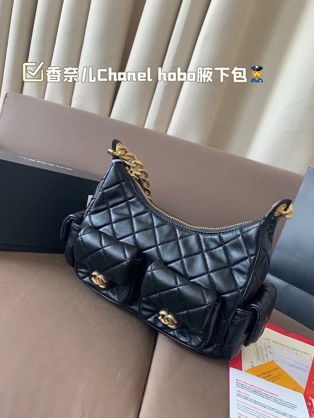 纯皮 配折叠盒大号尺寸31.15 香奈儿Chanel Hobo腋下包 四个口袋的设计小羊皮搭配金色五金 复古时髦感拿捏 闭眼入就对了精致又帅气简直不要太飒!!