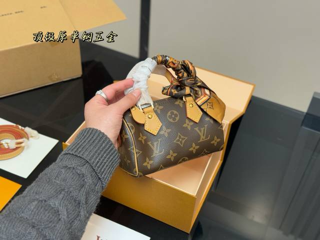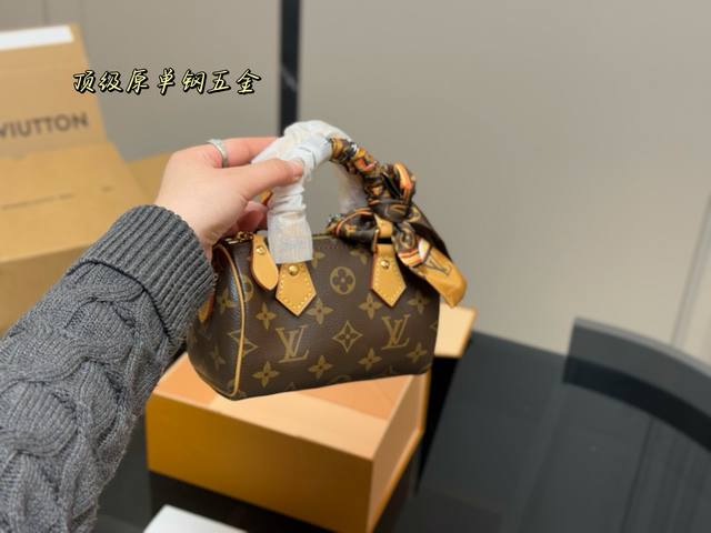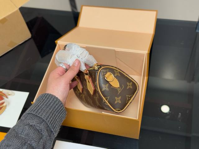 新款 配折叠盒飞机盒 Size:16*12Cm Lv Speedy Nano 代购渠道 台湾客定老花+五金+黄皮 肩带可以拆卸和调节长短哦!