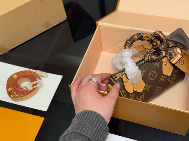 / 新款 配折叠盒飞机盒 Size:16*12Cm Lv Speedy Nano 代购渠道 台湾客定老花+五金+黄皮 肩带可以拆卸和调节长短哦!
