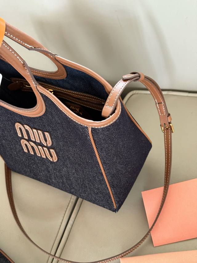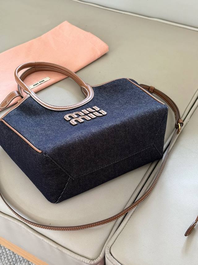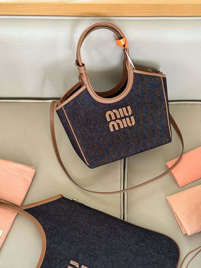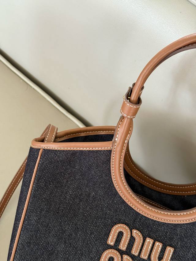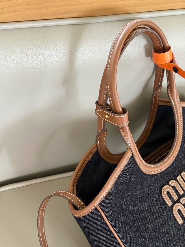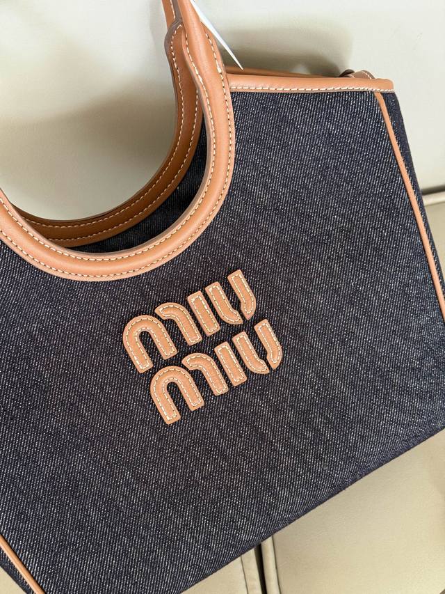 / 配盒 Size:21*18Cm Miumiu 牛仔托特菜篮子 牛仔帆布真的百搭很适合夏天哦自重也非常轻 这款的版型也太好看了吧! 春夏季帆布和托特包就是王道