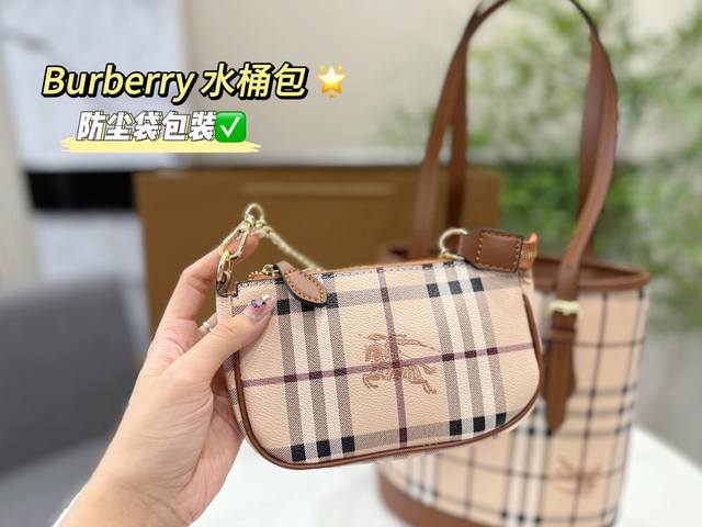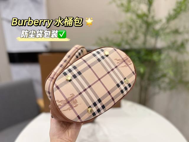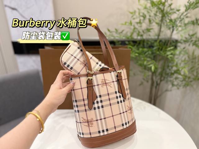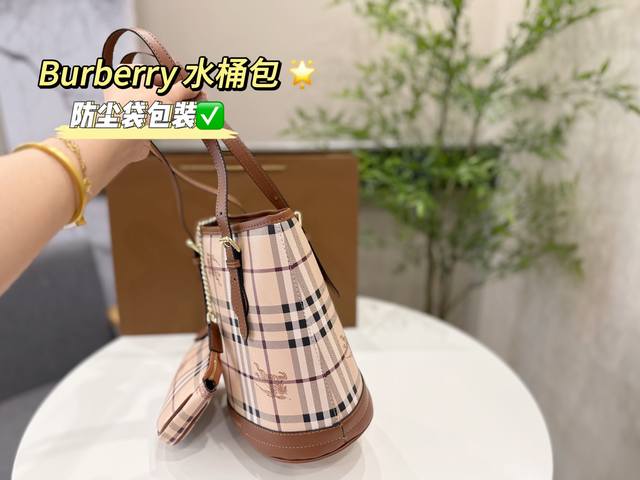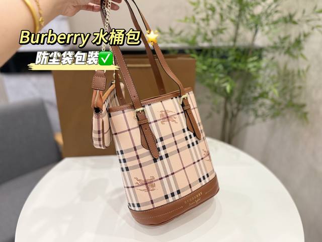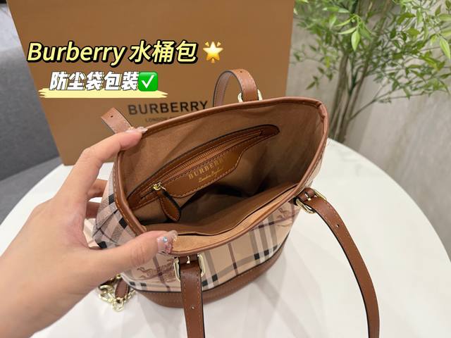 无盒 Burberry 巴宝莉 经典水桶包实用耐久的 Canvas 格纹水桶包 采用黄麻与棉混纺材质防水麻料 顶部皮革提柄四季必备 林心如等各大明星同款配小包
