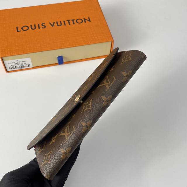 海外原单M60696金扣紫红钱夹独家实拍!功能实用且设计华美的 Emilie 钱夹采用柔软的 Monogram 帆布制成,衬以颜色鲜艳的内衬,气质极为优雅。 多袋式设计和引人注目的造型赋予其无法抗拒的迷人魅力。尺寸19.5×10Cm