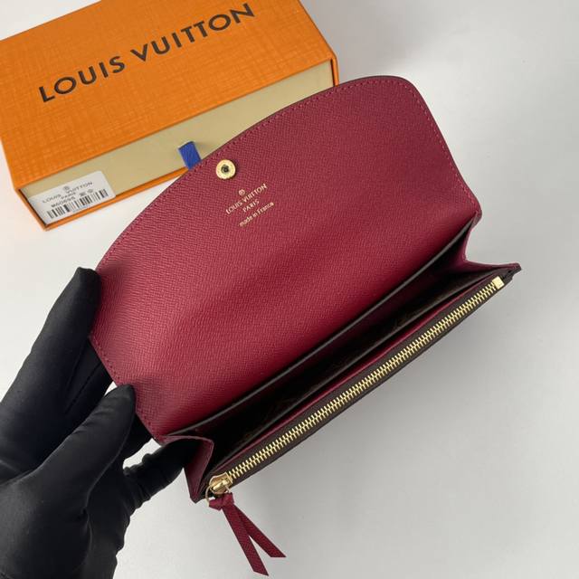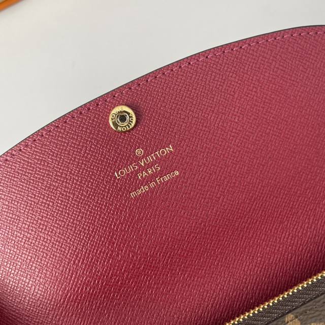 / 海外原单M60696金扣紫红钱夹独家实拍!功能实用且设计华美的 Emilie 钱夹采用柔软的 Monogram 帆布制成,衬以颜色鲜艳的内衬,气质极为优雅。 多