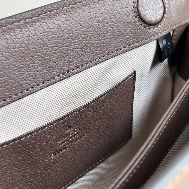 实拍# 型号:503877 尺寸:26*17.5*8 Gg Ophidia系列夹子包 经典款 采用棕色皮革滚边金黄色双Gg五金 磁扣闭合.真丝衬里.有两个隔层