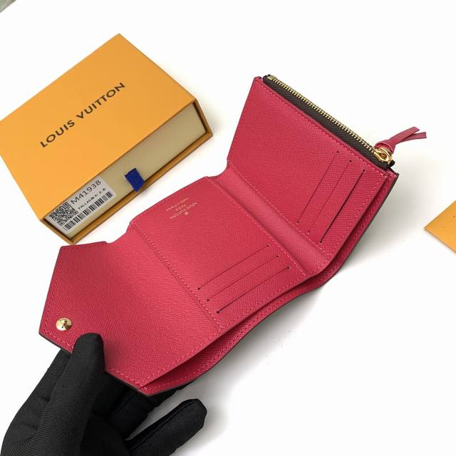 / 顶级原单 M41938玫红五金风格柔美而功能强大,此款小巧的Victorine钱夹是适宜随身携带的上上之选。标志性Monogram帆布搭配多彩皮革内衬,风格时尚
