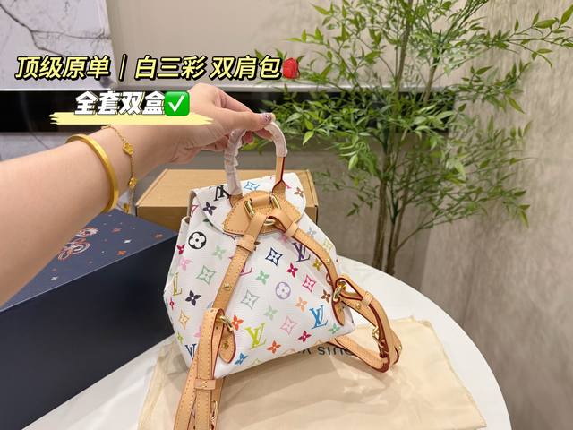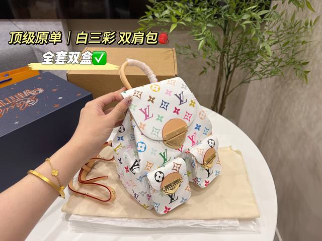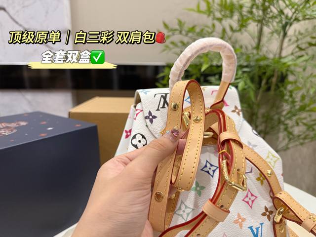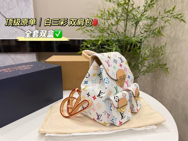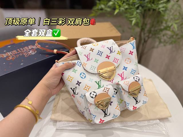 / 全套双盒包装 Lv Excursion白三彩 双肩包 双肩、单肩、手拎、斜挎四种背法都Ok 又是一个热门买不到款 可爱又实用,外加两个小口袋 肩带,时尚加倍尺寸