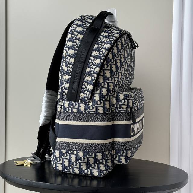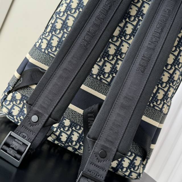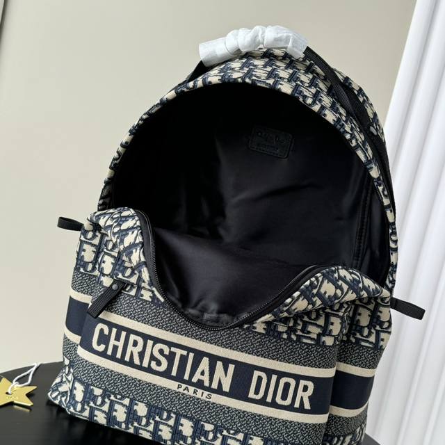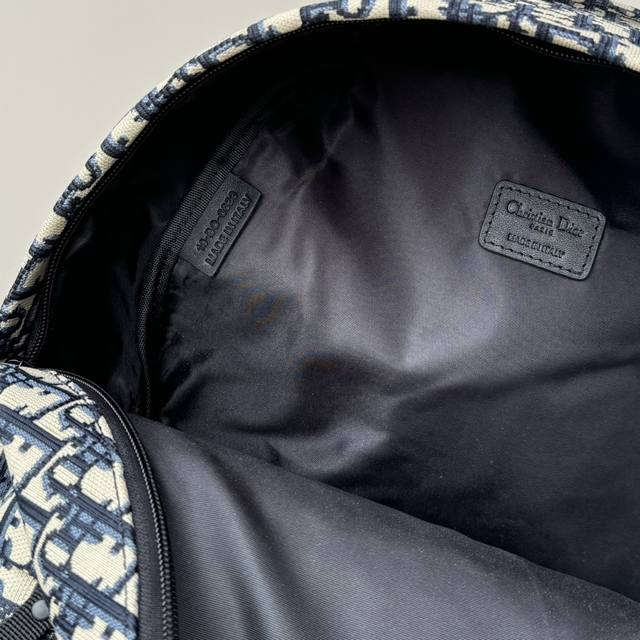 顶级专柜老鼠狠货最新火爆款迪奥刺绣款双肩背包男女通用款。这款 Diortravel Backpack 双肩包背包巧妙融合 Dior 的标志性细节与时尚而实用的设计。采用蓝色科技面料精心制作,通体饰以 Oblique 印花,正面饰以醒目的“Christian Dior Paris”标志。宽敞的主隔层设有拉链,可轻松打开,便于收纳和取用各种日常用品。搭配手柄和肩带,可肩背或双肩背。