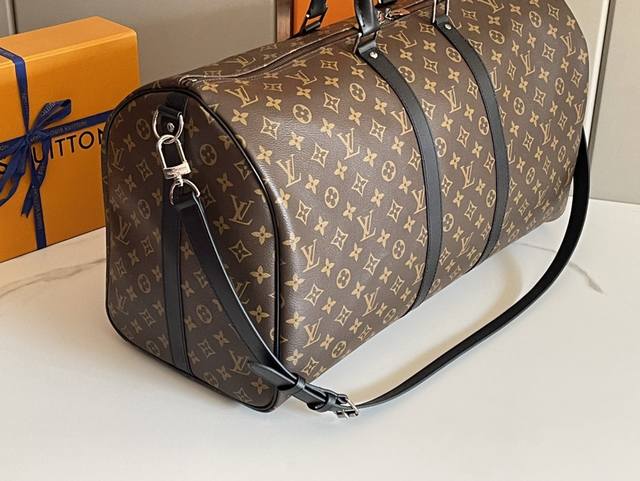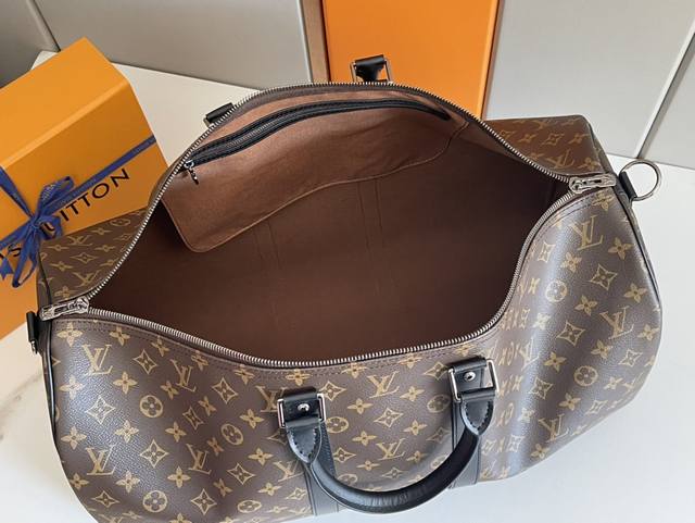 顶级原单原版开发,全钢五金 Keepall 55旅行袋,由全新标志性黑灰Monogram Eclipse帆布裁制而成。自1930年以来,Keepall系列包袋陪伴着一代又一代的旅行者云游四海。此款新版旅行袋配有多个提握舒适的皮革手柄、一条适用于闲适斜挎的包带以及一个闪亮的挂锁,短途旅行的伴侣。特殊涂层帆布一天然牛皮饰边一棉纺织衬里一大容量设计一随身上机行李尺寸一可拆卸皮革名牌一银色金属饰件一可拆卸,可调节肩带!!型號:M56713;尺寸:55X27X20Cm