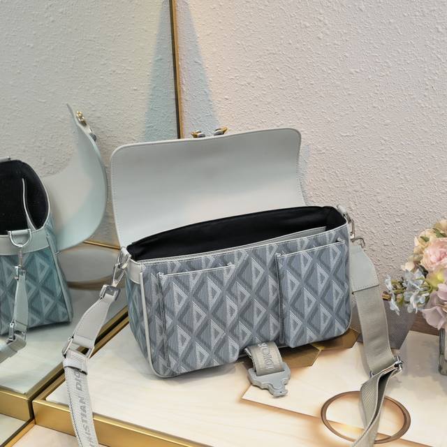 Dior-迪奥专柜最新款信使包 斜跨包官网同步 这款Dior Hit The Road 信使包是本季的全新款式 将现代风格与Dior的高订精神融为一体 采用黑色Cd Dianmond 图案帆布和光滑小牛皮精心制作 翻盖搭配Christian Dior 铝扣 宽敞的主隔层和正面双口袋设计 可轻松收纳各种日常用品 搭配可调节可拆卸的肩带 款式新颖 独特魅力 百搭休闲实用 出街帅帅哒尺寸:27.17.9Cm9942
