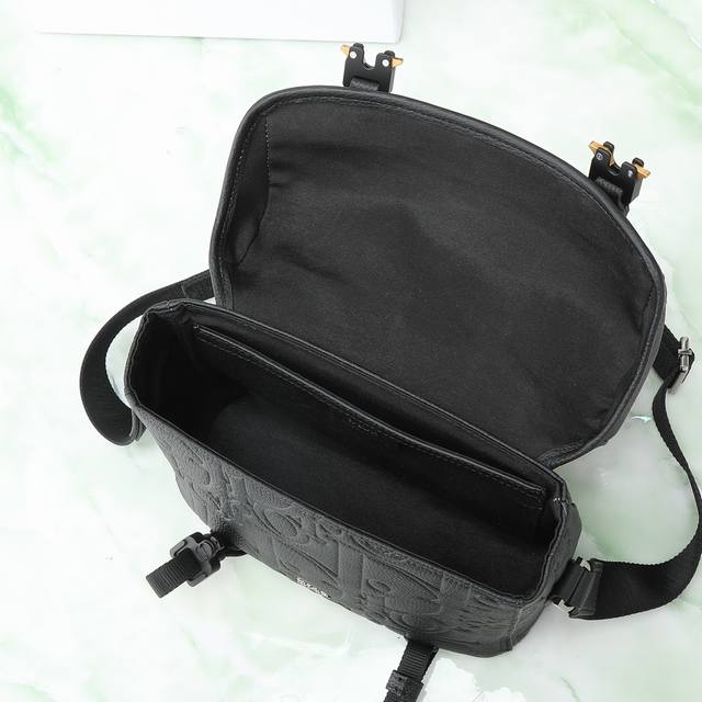 这款信使包是二零二四秋季男装系列新品,搭配翻盖,现代时尚的设计充分突显Dior 的高订精神,进一步丰富Dior Hit The Road系列。Dior Gravity 印花效果皮革采用压花工艺将经典图案精致地呈现于黑色牛皮革之上,彰显Dior工坊的精湛工艺。翻盖带有饰以Christian