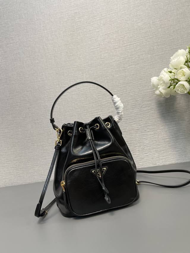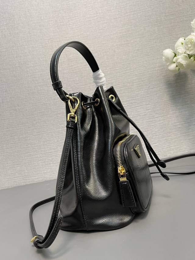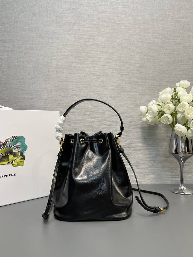 / 顶级原单 漆皱皮水桶包1Bh038水桶包这款水桶包采用进口漆皱牛皮面料,顶级五金,配有一条可拆卸长肩带,手提 斜跨,轻便又实用又时尚,容量空间大。美女们赶紧入手