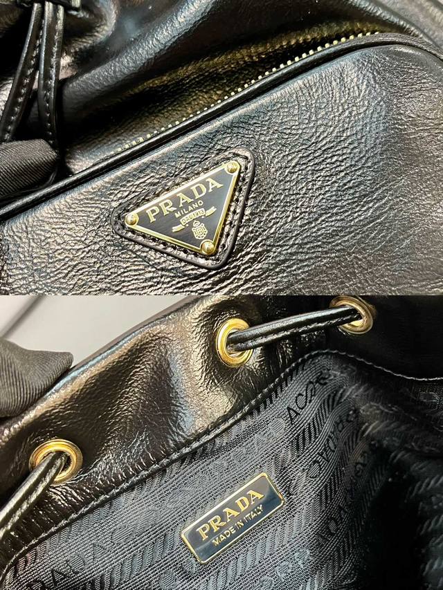 顶级原单 漆皱皮水桶包1Bh038水桶包这款水桶包采用进口漆皱牛皮面料,顶级五金,配有一条可拆卸长肩带,手提 斜跨,轻便又实用又时尚,容量空间大。美女们赶紧入手