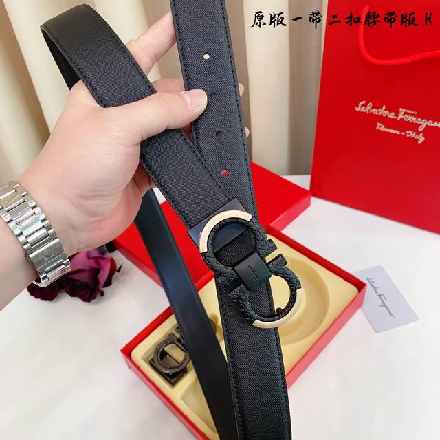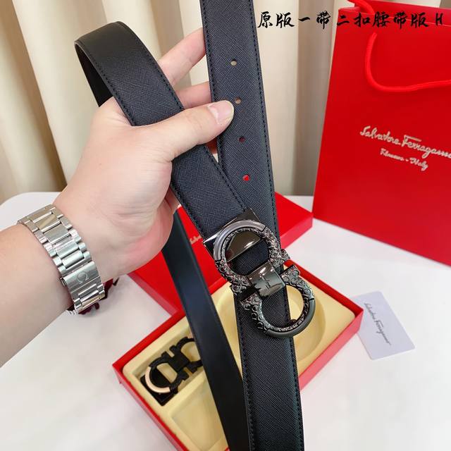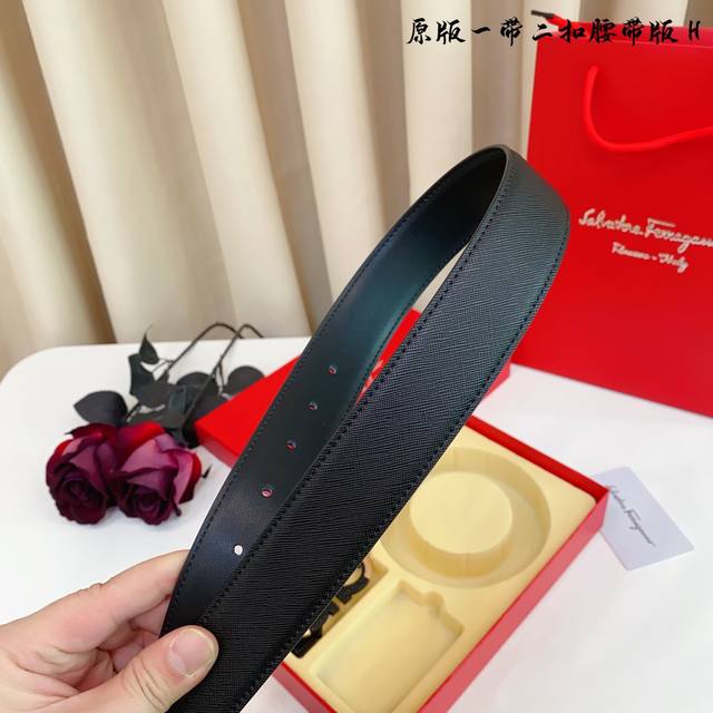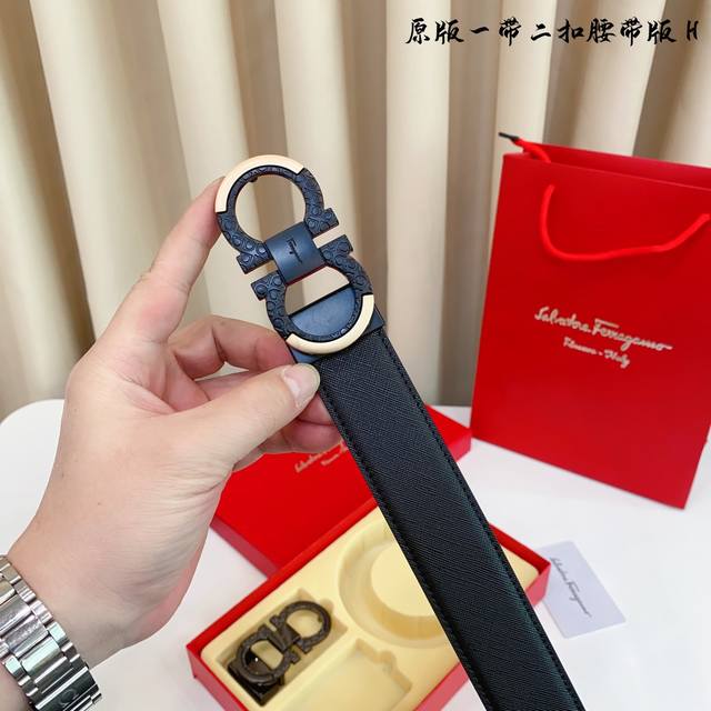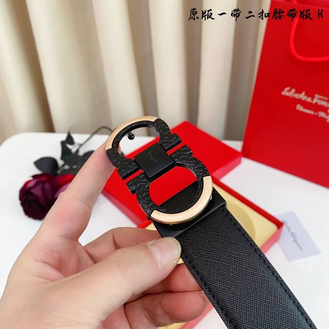 1带1扣 1带2扣 菲拉F家 双扣版 1带2扣 正版开模 此款腰带双面采用原厂牛皮带身,精密电镀标志性五金搭扣 对版专柜。3.5Cm 如需木盒40