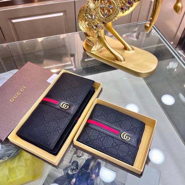 / 短 长 古奇颜色 黑色 尺寸长19X10 短12X10男士软皮长短款对折一比一进口牛皮手感无敌
