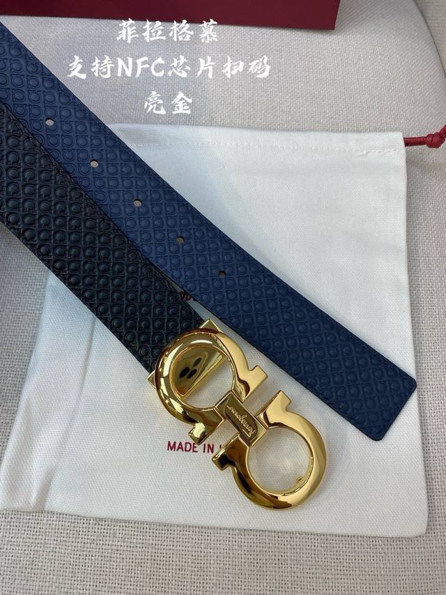 Ferrago 菲拉F 雙面头层牛皮 全新效果精钢材质搭扣 寬度35毫米 該皮帶可調節 且能根據需要裁剪達到修身效果