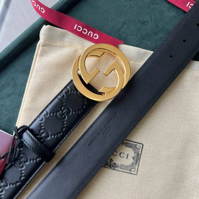 配送专柜全套礼盒包装。Gucci 经典全皮压花,原版进口皮底,精品双g钢扣 宽度40Mm