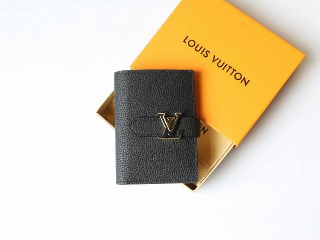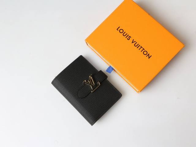 / 颜色 黑 老花卡其尺寸 12X9Lv Vertical Cp 钱包采用精美粒面 Taurillon 皮革制成,配有撞色衬里。滑动式 Lv 首字母搭扣让人想起标志