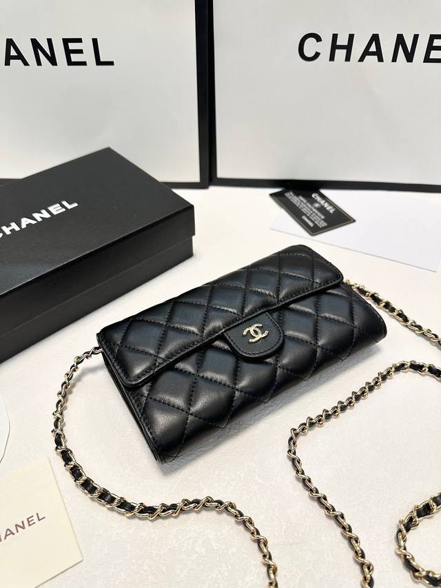 / 颜色 黑尺寸 19X10Chanel香奈儿永恒的经典, 新款配置金色五金 , 内置卡位,一个金属拉链袋,多个隔层,时尚又大方