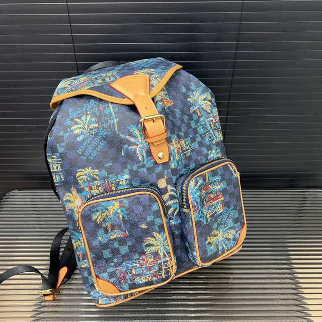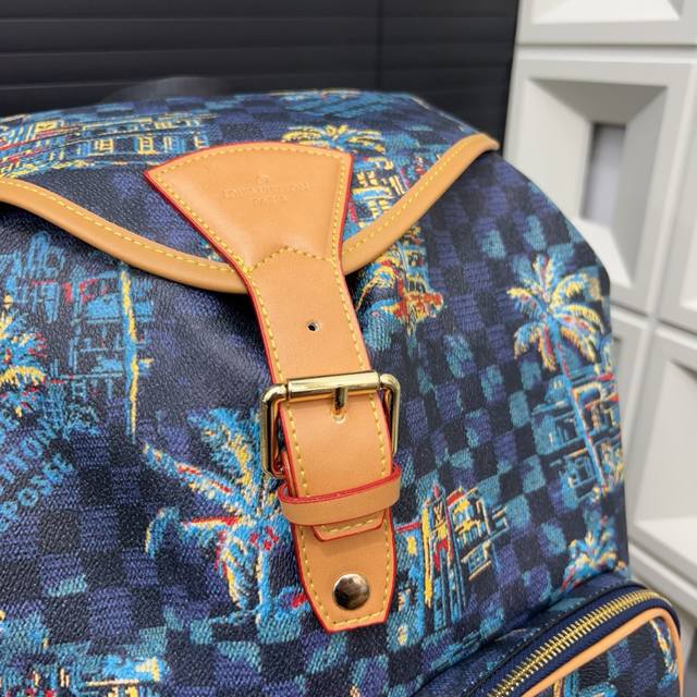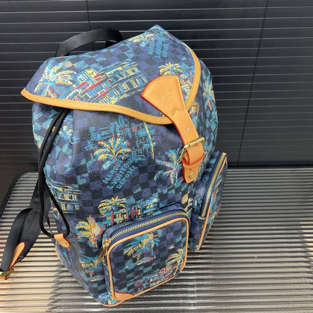Lv 热带棋盘格Montsour Cargo双肩包背包 实物拍摄 原厂原版面料 配送防尘袋 40 X 34Cm。