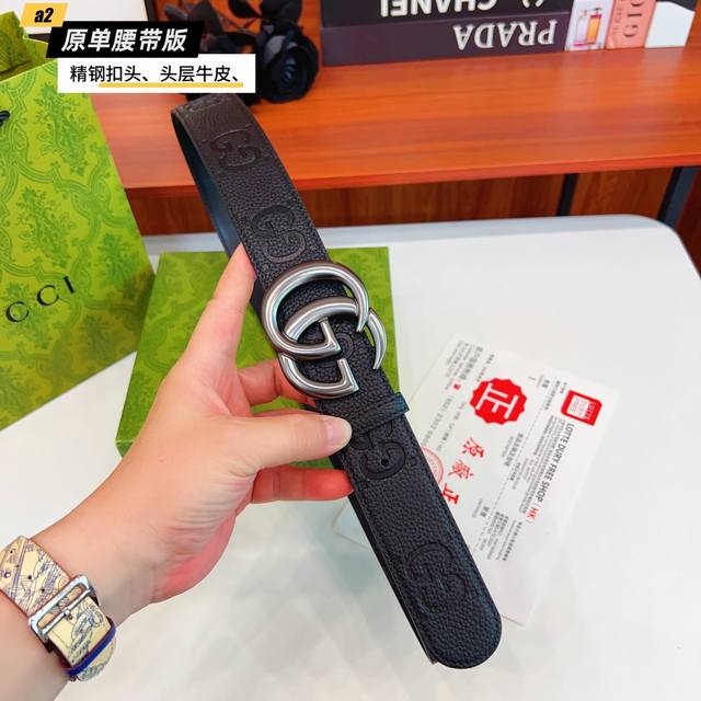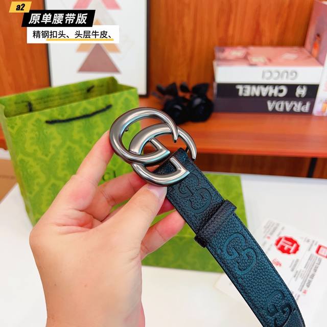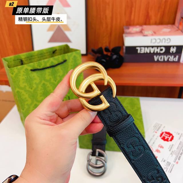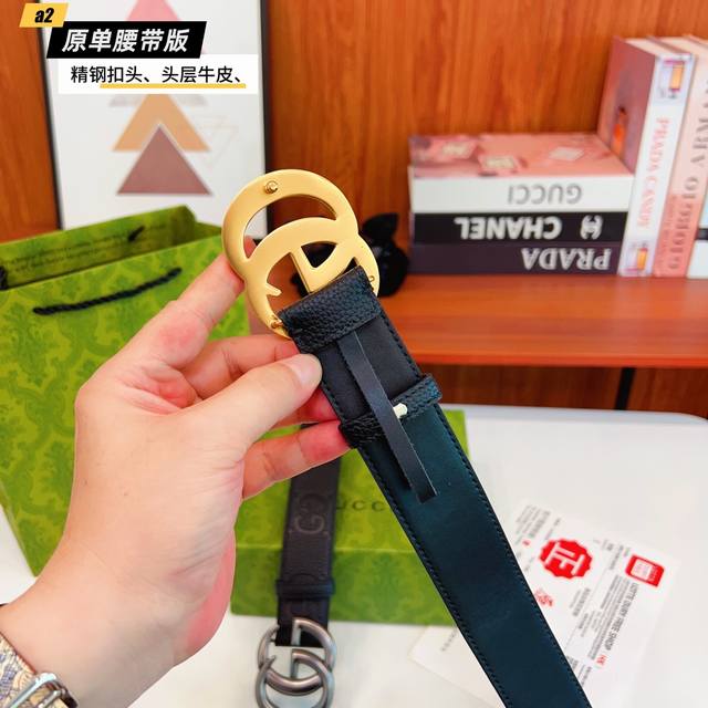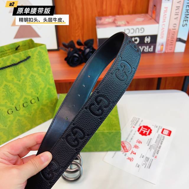 Gucc古奇G家 原单新品 带身采用雙面意大利進口原廠牛皮纹 非市场普通版本 黑色经典配色 百搭适合各种场合 扣头精品设计注意细节 宽度3.8Cm