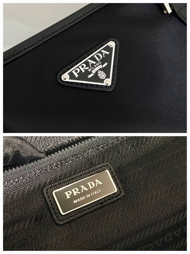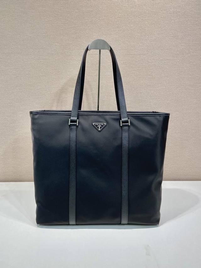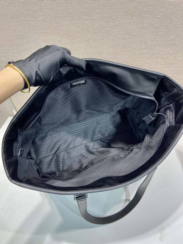 新款托特包2Vg112 这款托特包取材Re-Nylon再生尼龙打造,饰以Saffiano皮革细节,扁平皮革提手,正面涂珐琅金属三角形徽标,内部配拉链式口袋,容量