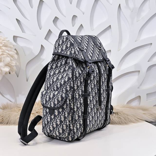 市场最高版本 原单品质 正品打版 Diortravel 双肩背包 蓝色提花面料 Oblique 印花 中号 编号: M6104Stzq_M929 这款 Dior