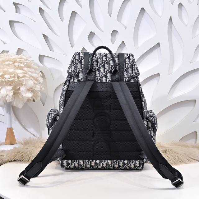dior-迪奥专柜最新款马鞍双肩背包官网同步 原单品质 深灰色 采用米色和黑色Oblique 印花面料精心制作 饰以奢华的黑色粒面牛皮...