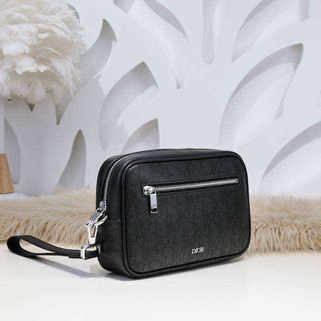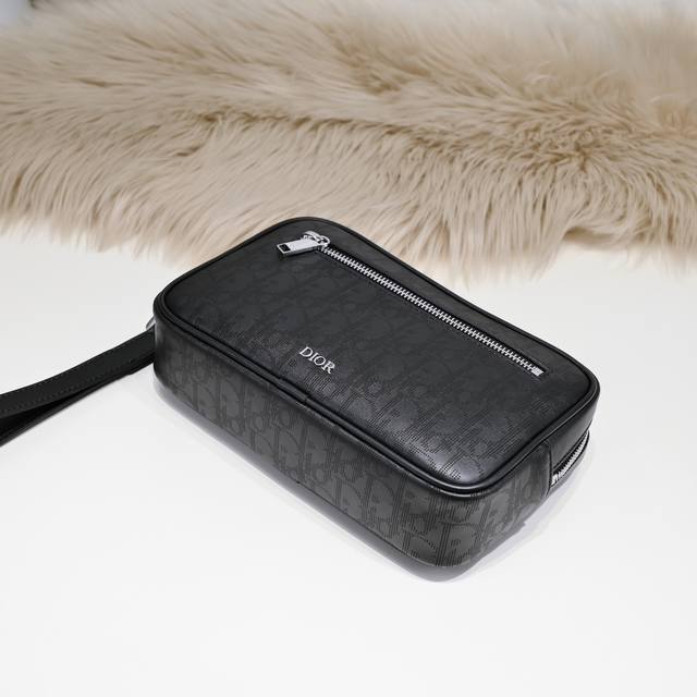 Dior-迪奥最新款手拿包官网同步 原单品质 采用别致的黑色Oblique Galaxy 印花皮革精心制作 镂空的光滑牛皮搭配反光里料 皮质柔软 手感超赞 搭配“Dior”标志 正品开模 所有材质都是对原版订制 高品质 配盒子尺寸:24.15.5Cm