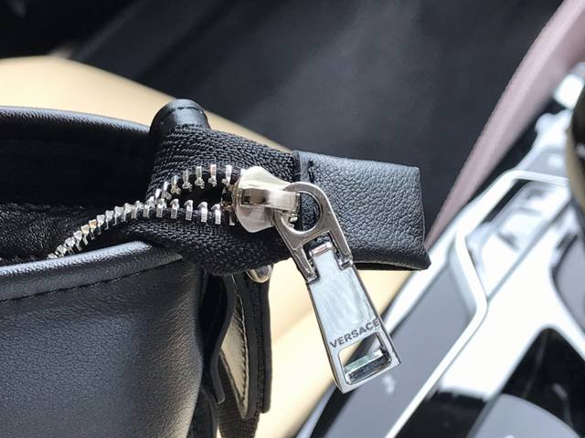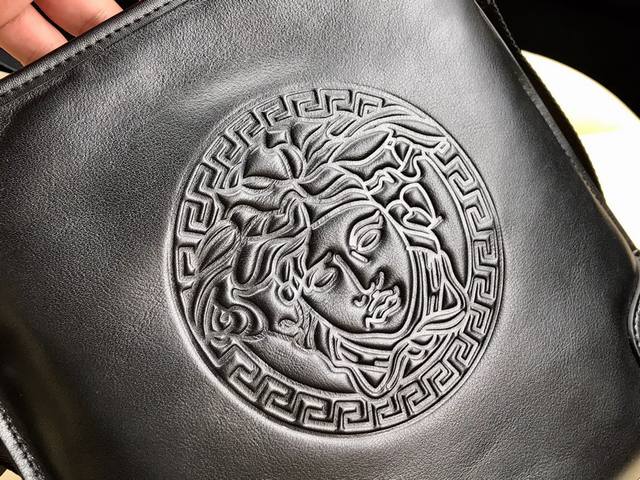 型号:020-2。规格25X27X5.5Cm。范思哲官网同款男士斜挎包 经典风格设计 头层牛皮甄选意大利进口 细腻顺滑 里布选用Versace御用 彰显尊贵 正品代工厂P生产 车工精良 走线工整 五金配件均为原厂正品配件 黑色