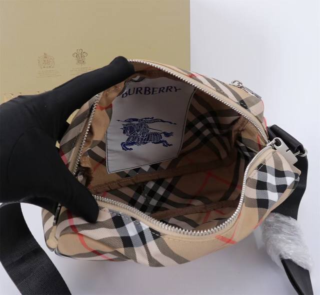 B家最新斜背包,装饰精纺 Bur格纹。点缀马术骑士徽