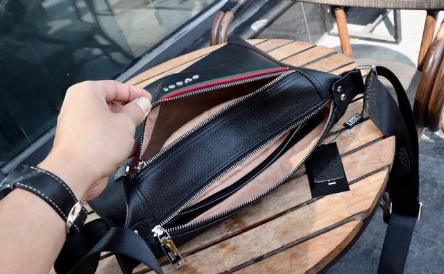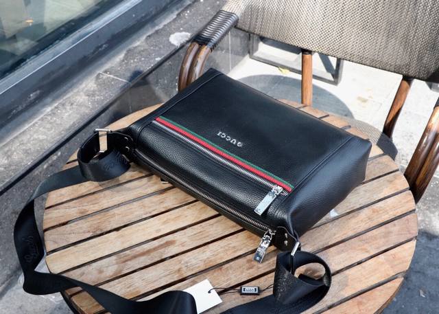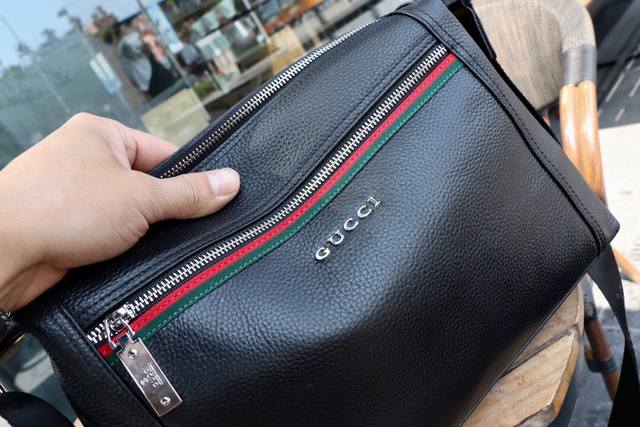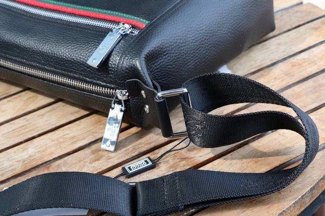 Guccl古奇 大容量 型号1313-2 休闲斜挎包 颜色 黑色~高端品质 顶级做工 材质 古奇Guccl 专柜代购新款原厂进口头层牛皮正宗进口古奇五金及拉链皮质柔软手感独特的品质时尚与经典复杂的手工构制潮男必备尺寸31-21-7Cm