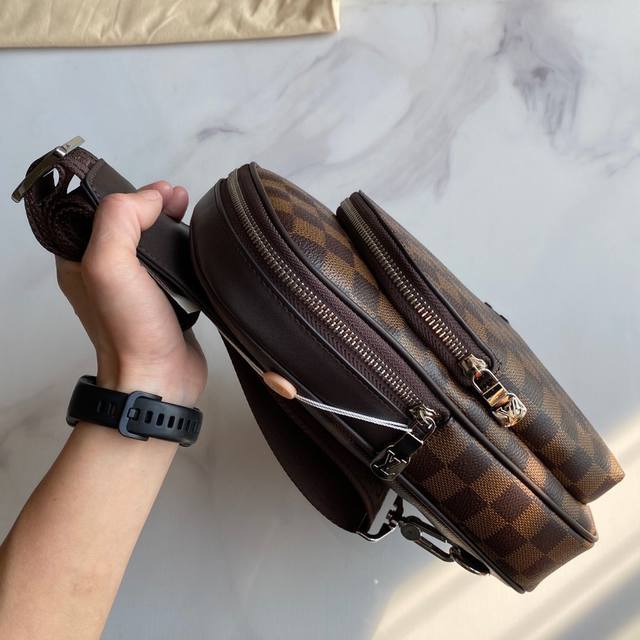 / 新款路易威登Lv胸包 进口台湾料配进口牛皮,顶级男士高端,原版皮。名师设计,资深裁缝手感超赞上身效果极佳设计理念独特,献给绅士的你,实物拍摄.触摸可及的效果[微