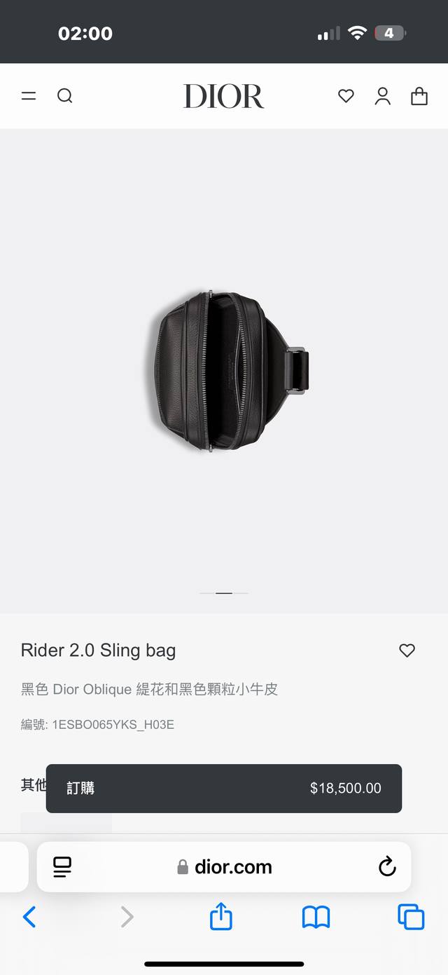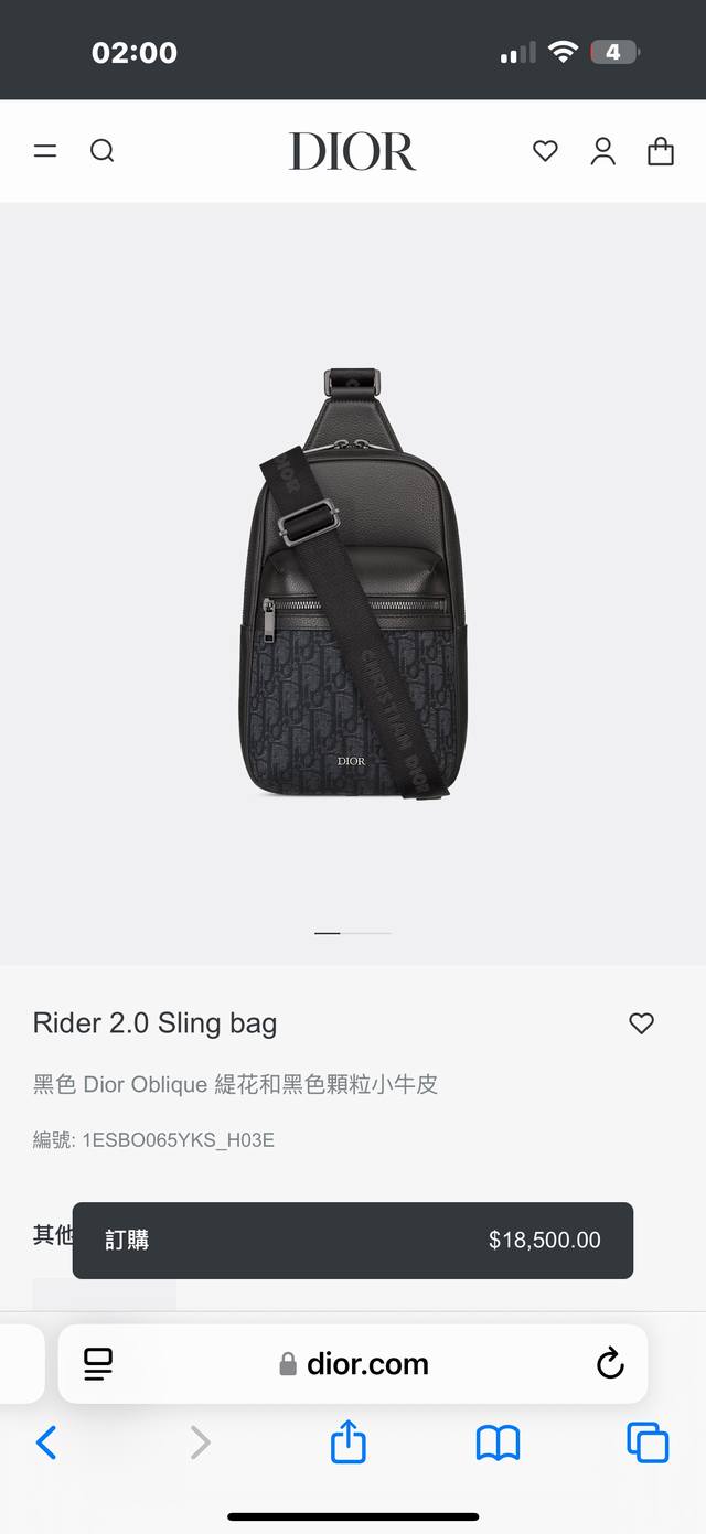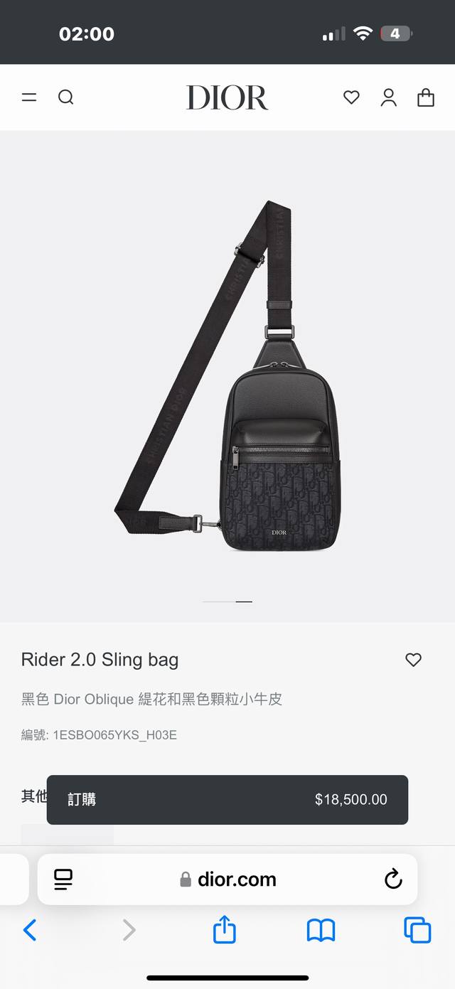Rider 2.0 Sling Bag 造型設計時尚實用。以黑色 Dior Oblique 緹花製成,綴以同色系顆粒小牛皮細節,飾有 Dior 標誌。主拉鏈隔層和正面拉鏈口袋可容納所有必需品,配以可調整長短的肩帶,方便肩背或斜孭。