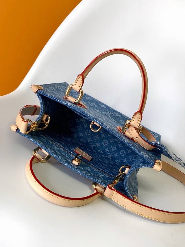 顶级原单 动态163 本款 Onthego 小号手袋为经典 Monogram 丹宁布勾勒牛皮革饰边,搭配耀目金属件和磁扣翻盖开合。充裕空间可容纳平板电脑和日常所需,可拆卸肩带实现手提或斜挎。织物一牛皮革饰边一织物内衬一金属件一钩扣开合一拉链内贴袋一双内袋一可拆卸名牌一可收纳 8.3 寸平板电脑、智能手机、Sarah 长款钱夹、钥匙、口红、纸巾和小书本一肩带:可拆卸,可调节!!型號:M14633;尺寸:25X19X11.5Cm47